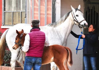 Consideriamo molto importante il benessere della fattrice e del suo puledro. Per questo portiamo sempre il puledro in visita con la mamma e la prepariamo con cura per la fecondazione, applicando le migliori norme igieniche.